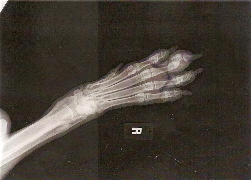 BHRR’s Dana – right front foot – June 10th, 2009 –Â middle phalange, comminuted(crushing) fracture