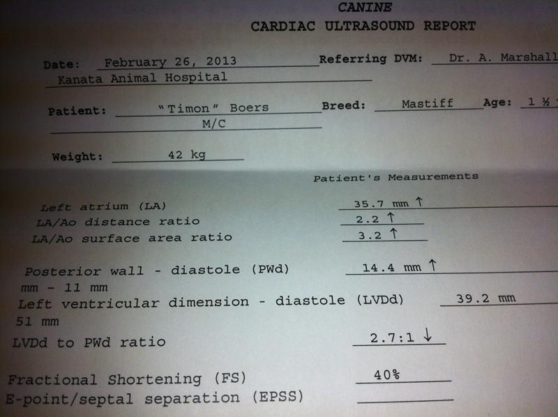 At work yesterday, I obtained a copy of Dr. Javinsky medical report on BHRR's Timon's Cardiac U/S that was done on February 26th, 2013. His weight was 42 KGs(92.4 Pounds).