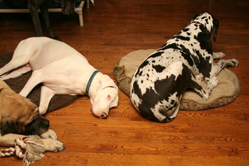 I am going to post two more pictures on BHRR’s Ava Marie’s slideshow #16 & #17 from March 9th, 2010 and I am also going to post them below. One is a great comparison shot with PPSS and part of our own EM Guinness and another is a face shot for that was what I was taking tonight of some of the dogs. Those that have met my PPSS, know that he is not a small boy at around 150 pounds himself yet you can see that he looks so small next to BHRR’s Ava Marie and Guinness’s head does not look all that large anymore either. AND great success today for we have her lying on a dog bed yet even the dog bed looks tiny. Later this week, we are going to tackle her nails too. Thursday is what I have dubbed ‘conveyor nail trimming belt’ day at our home and we shall see how Ava Marie handles this experience.