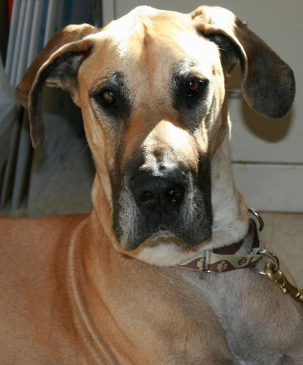 I spoke with you a few months back about a Dane we had here at our shelter. The dog went into a few foster homes, and then the last foster mother decided on keeping him.