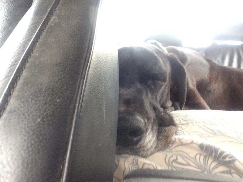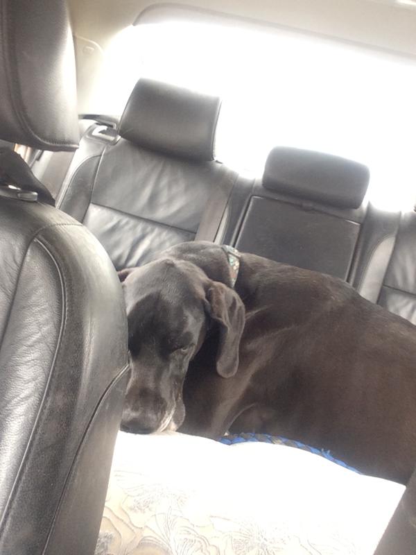 Below are a few pictures of him in the car from that day! This is the bed that I gave to BHRR's Reese the day that I dropped her off for her last transitional adoption play date/sleep over. Special bed for special dogs!