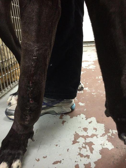 Below is a photo of his leg after the bandages came off and, it was cleaned up.