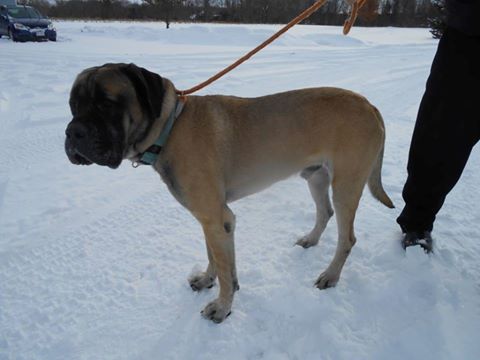 Small Male English Mastiff – Shelter was told ~4 yet bylaw thinks younger as his build is very adolescent.