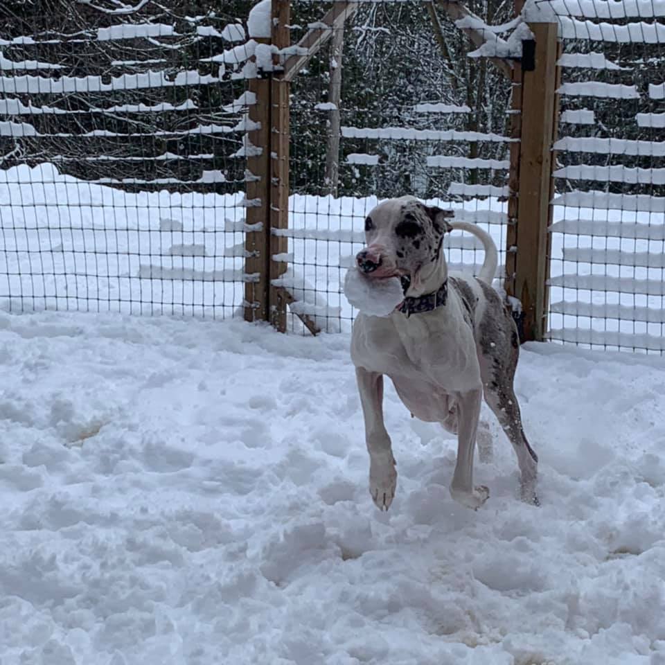 BHRR’s Miss Lily (Deaf/Visually Impaired Great Dane) enjoying the Winter Wonderland today!