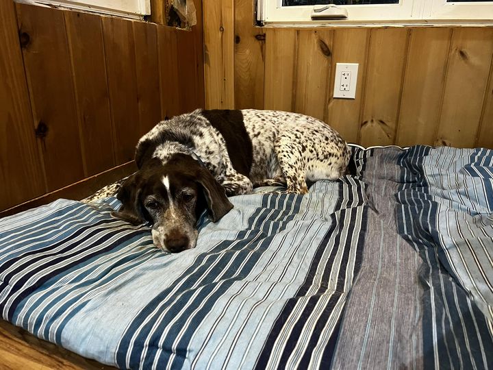 Sep 12022 Mr. James(14+ year old GSP) wants to check in to say that he is doing well! He is supervising me while I work on school tonight. He is such an amazing boy!