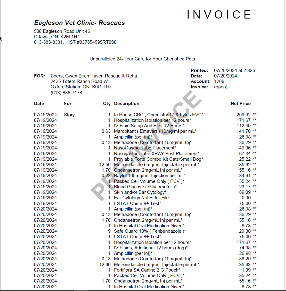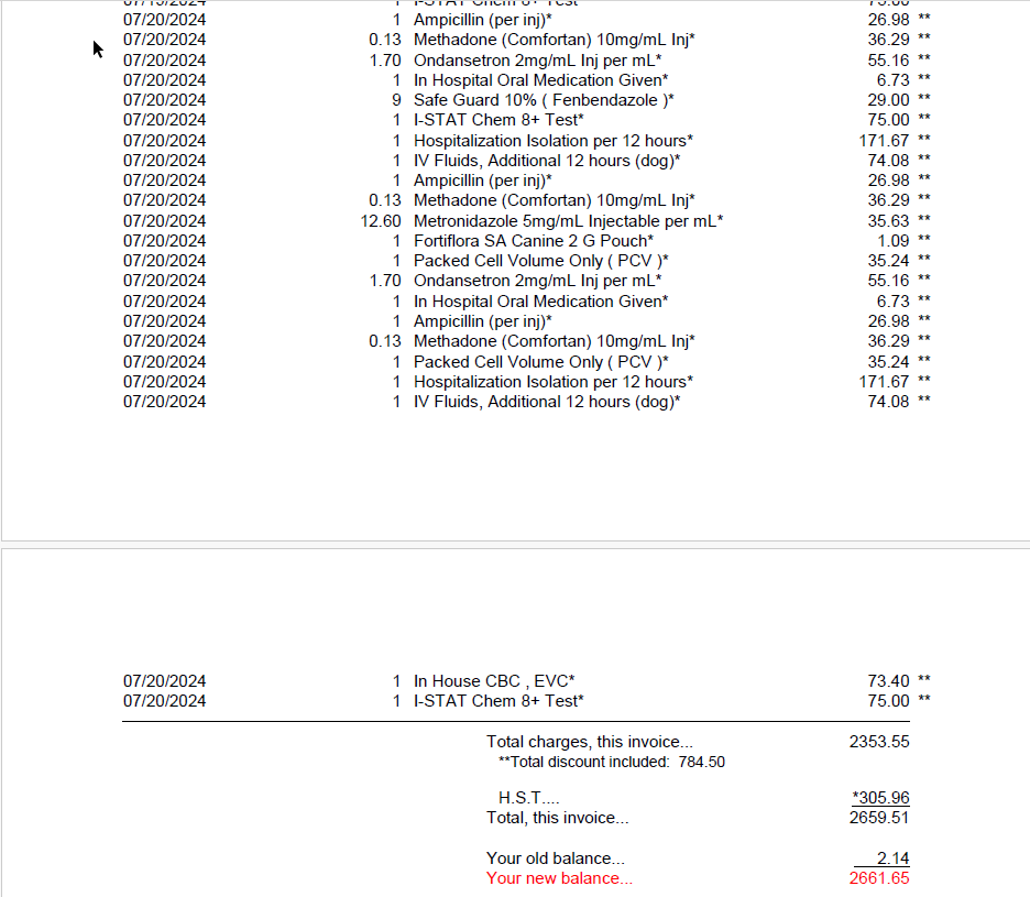 Jul 202024 Invoice documentation at 2:36 pm on July 20th & as of 8:47 pm on July 20th, billing was: $2,994.53