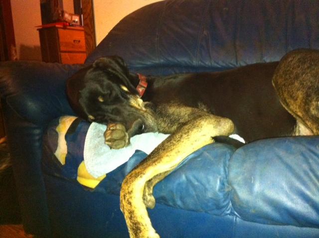 AND to show what a ham this boy really can be; I am posting a picture below from when I came home from being out one night with some friends back in June! I think he likes Bleach's couch!!! 😀