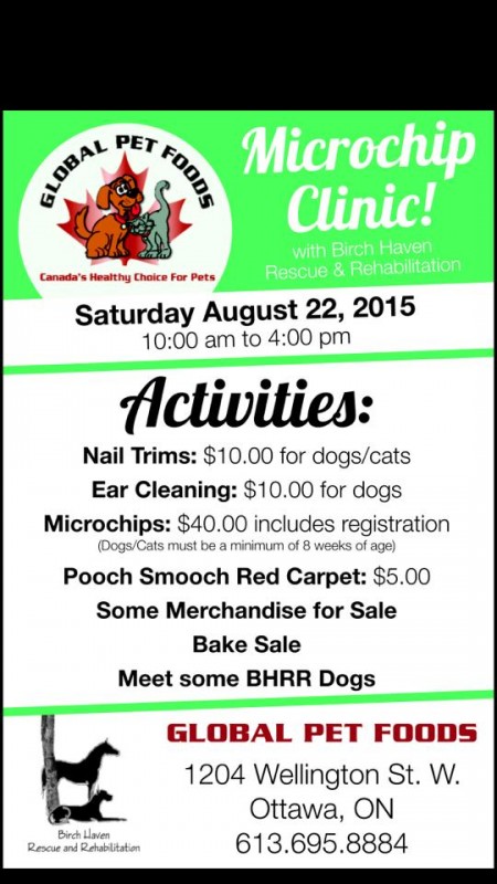 August 22nd Mini Microchip Clinic at Global Pet Foods – Hintonburg $876.25