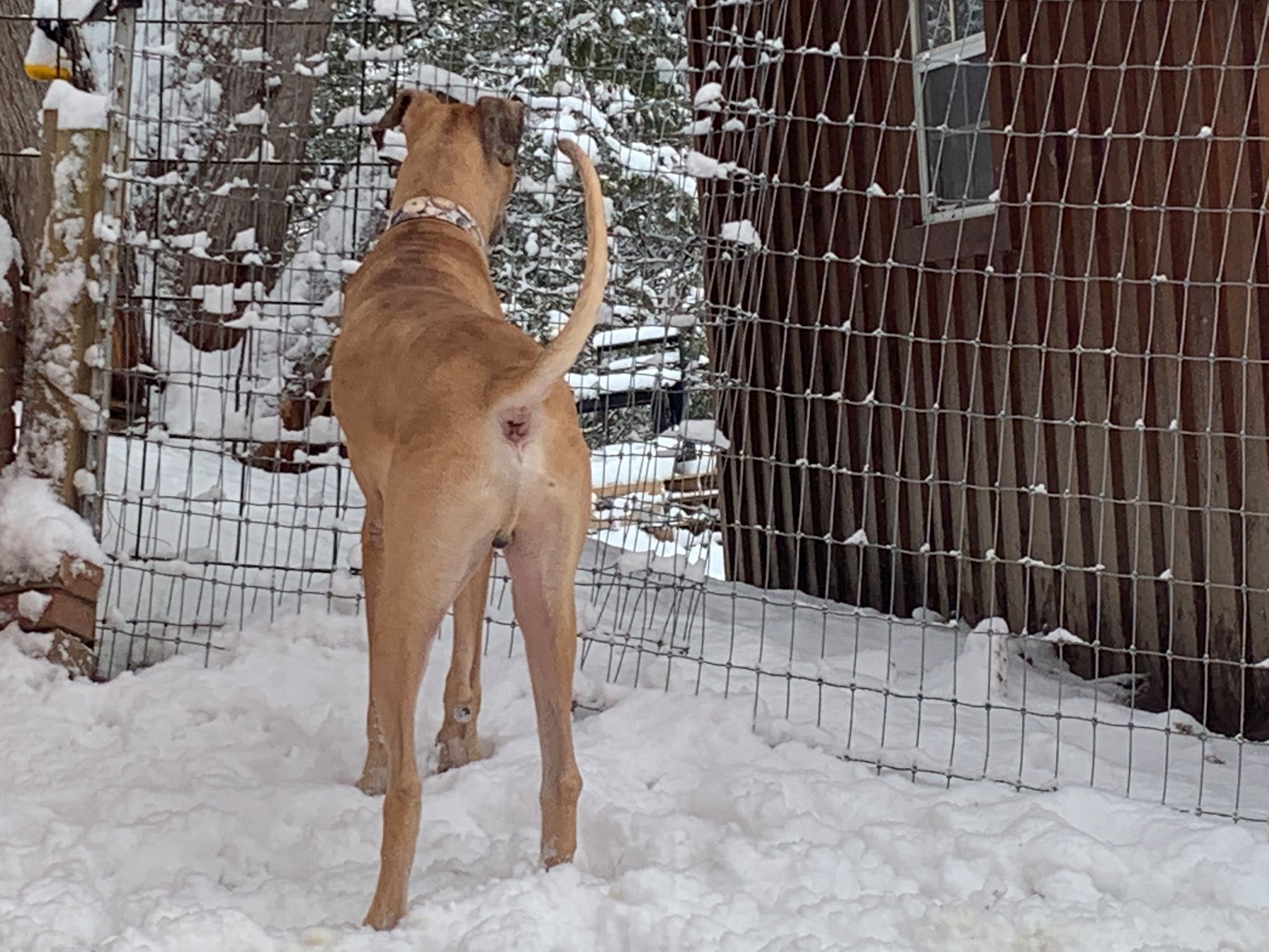 He wants me to let him out of the yard so he can ‘help’ Sean plow! He raced all the way downstairs to the side yard in his excitement!