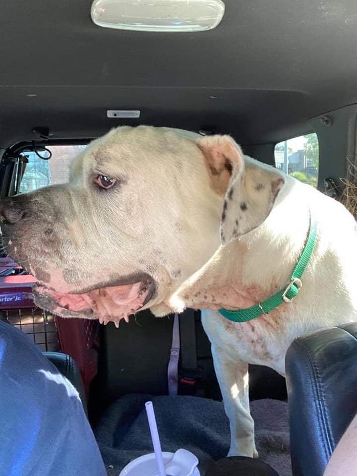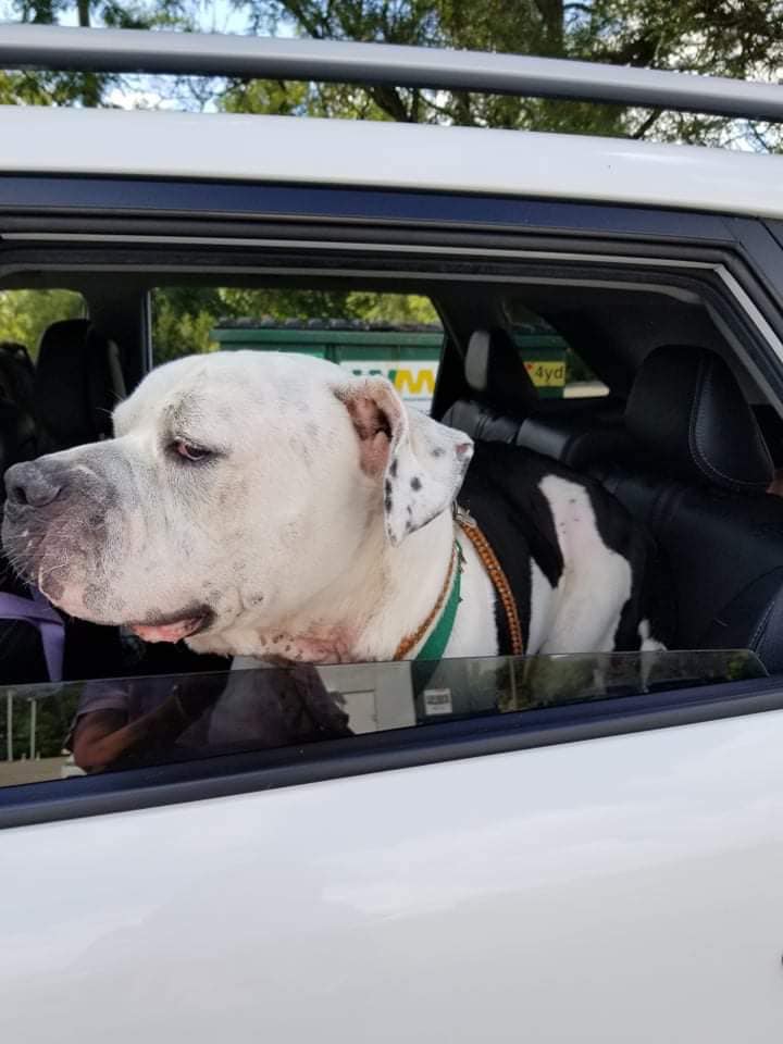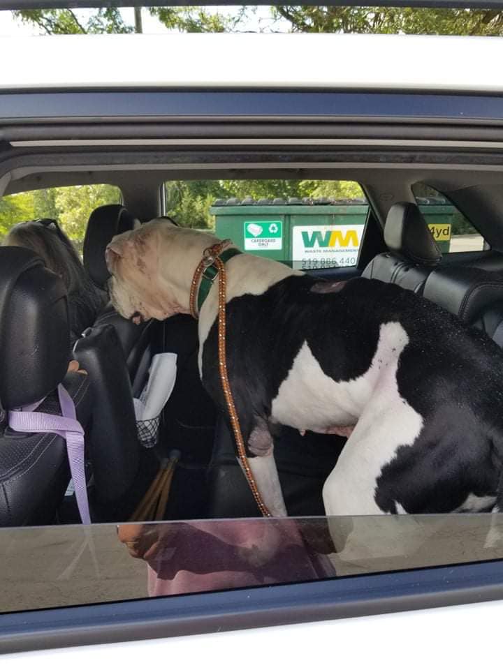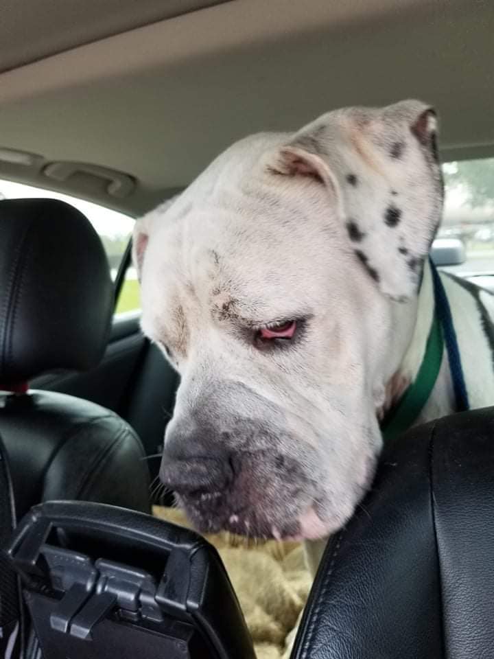 The senior 8.5-year-old special needs American Bully/DaneX.