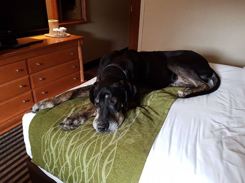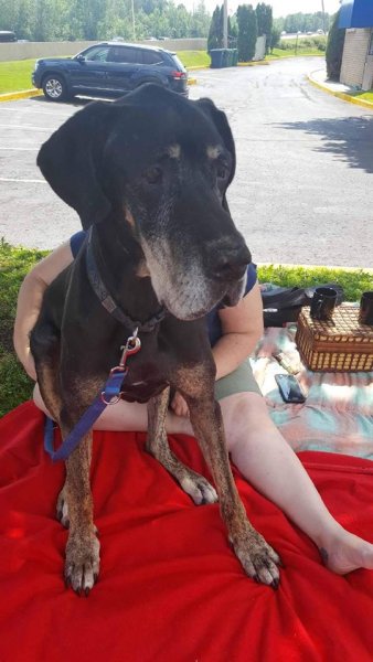 While we were not given a set time line to expect to say our good-byes to this really wonderful plus handsome black/tan Great Dane, we were told that it would be anywhere from a few weeks to a few months.