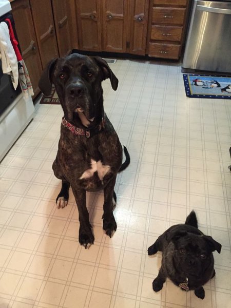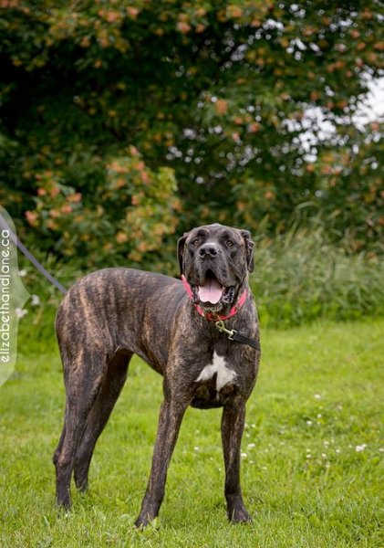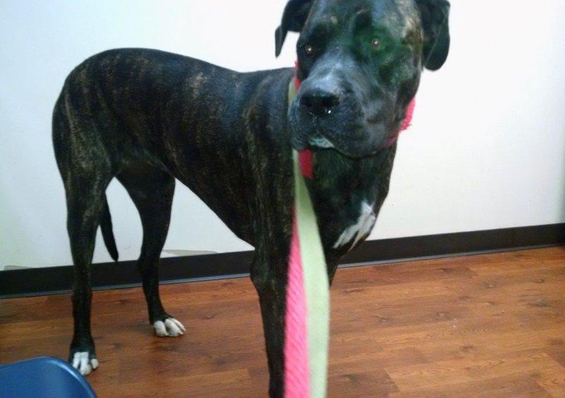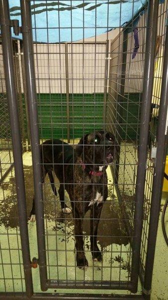 "I just looked closer at the post, and she's a mastiff/Dane mix?  She's alpha but OK with submissive dogs.  She's at a really bad, really rural shelter in the middle of KY.  There is also a mastiff mix puppy there — probably her pup."