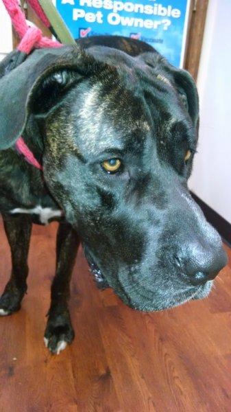 This girl wen to the Vet today and, weighed 128 pounds and here is what Karen T., the lovely Volunteer had to say about her. THANK her as well for not only taking her to the Vet on my behalf(I called in my CC number to the Hospital to pay for all the bills incurred), yet, for the two additional photo's of her!
