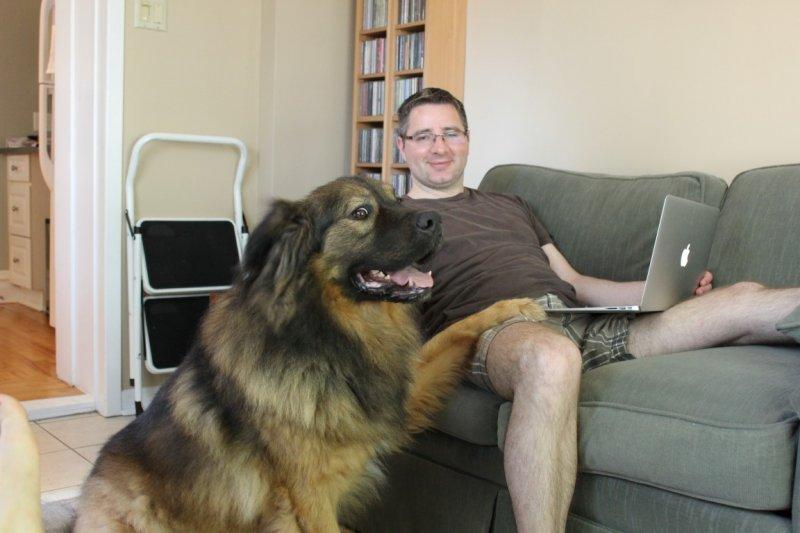 He was a bit anxious after you dropped him off, but we brought him out to the backyard and he was distracted by his mission to pee on all of the plants (and BBQ) π He had one moment where he was a bit nervous when Andrew came down stairs after his shower, but after about 2 seconds he was fine. We took him for a few walks today and he had fun sniffing around the neighbourhood and making a few new friends. He was a really good boy and a lot of fun to have for the day.