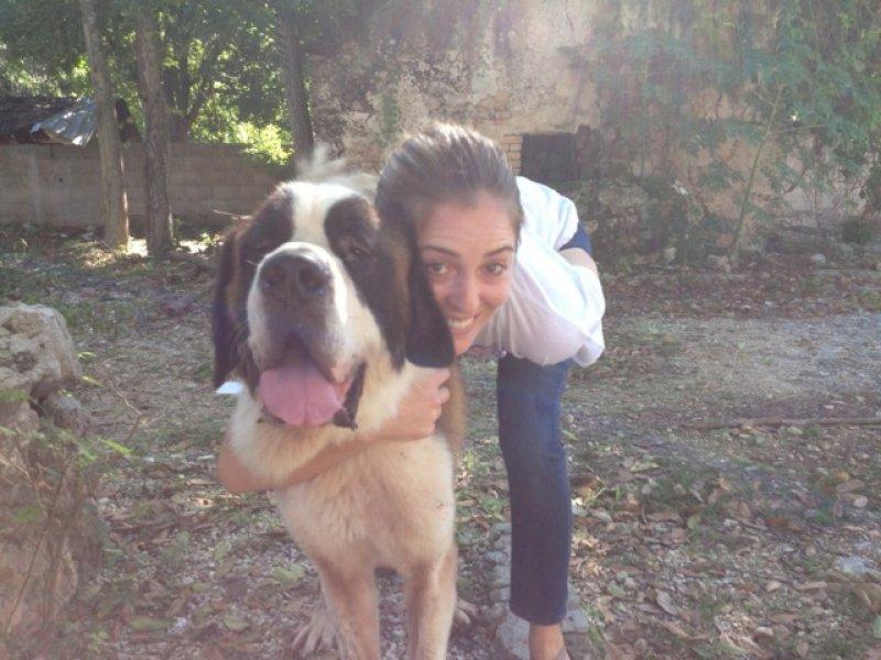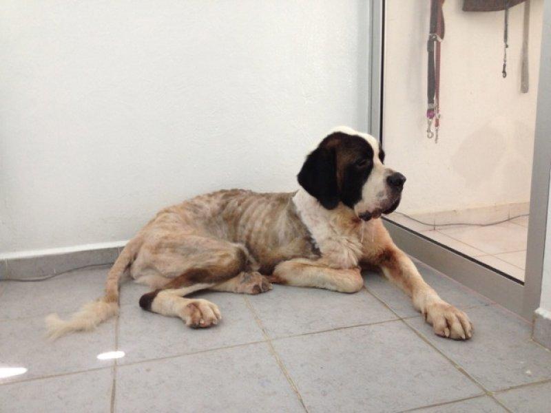 I am going to tell you the story of Sanson. We found him at the end of Punta Sam in Cancun on the 29th of September, I was on my car with my dogs and so this beautiful but amazingly skinny giant crossing the street, I got out of the car to call him and with no hesitation he ran to me and kissed my hands. Obviously I had no heart to leave him there so I opened the back of my van and he jumped in with his front legs but didn’t have enough energy to put up his back legs so I helped him up and he just fell asleep. I was on my way to a spaying and neutering campaign Petopia and Tierra de animales had organized so I took him with me with the hopes we could neuter him, once I got there we checked him and he was way too skinny to go through surgery so we fed him and gave him water. In the afternoon I got him back in my car and brought him to Petopia where we cut his hair and took of all the ticks, he was very infested but we were able to clear him after a few hours. His weight at the time was 35 kg (77 pounds) 55 pounds less than what a St. Bernard should weigh. We took him in and started getting him better, we had to measure his food since his stomach was so small we couldn’t just give him much food, so we fed him many times a day but small portions, we did exams to see how he was and obviously he was anemic and also had anaplasmosis and ehrlichiosis so we started treating him. We so a difference right away he is a great dog always thankful and playful with everyone and loves to be pet. We didn’t socialize him much since he had no shots and we had to wait for him to get better, now it seems he does ok with some and not so good with other, he doesn’t seem as an aggressive dog but maybe from the street he created a character to protect himself, if a dog barks at him he barks back, if a dog wags his tail he will wag his tail. Now Sanson has been neutered and has all his shots, and we couldn’t be happier that he is having a new start in Canada! Thank you so much to everyone who helped to make this possible! Now Sanson weighs 49 kg (108 pounds) and he is ready to be adopted and loved by a family, he is approximately 2 years old. He still has a way to go but he has passed the critical days he just needs to keep eating!