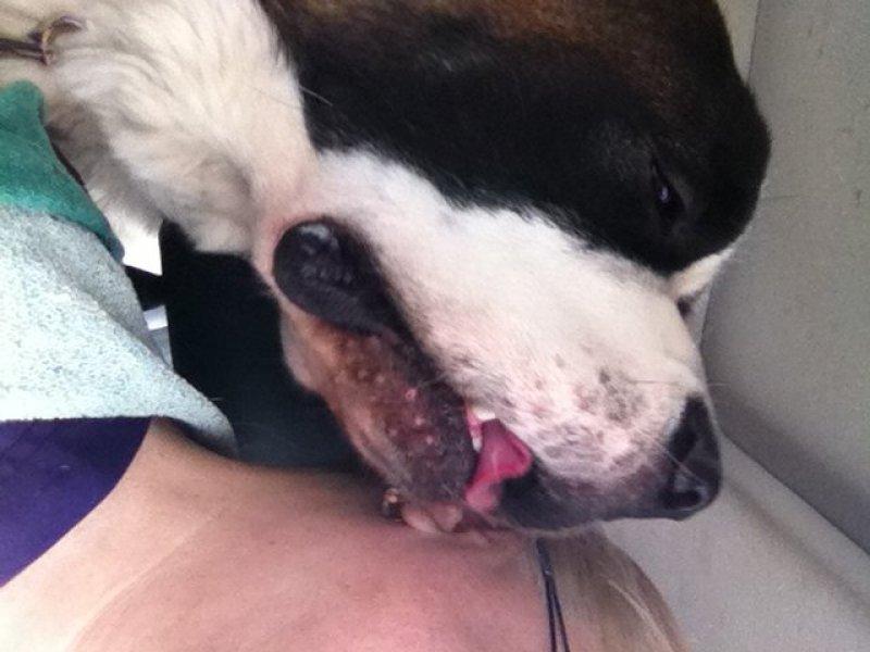 What they do in Mexico is INCREDIBLE! We think we see terrible things in Canada yet, talk about being in the trenches of rescue hell. Two days before BHRR's Cancun arrived, a GD was picked up and brought to their latest campaign – they spayed and neutered voer 1,300 animals in just 6 days in their latest campaign – and she had a gunshot wound. A lovely female Harlequin GD. The hole was small yet the blood clots that were coming out of her were enormous and she was suffering with major internal organ damage.
