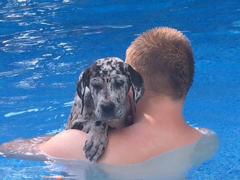 I have carried him into the pool three times over the last three days and, he will fall asleep in my arms just being held……relaxed and soothed to nap…..