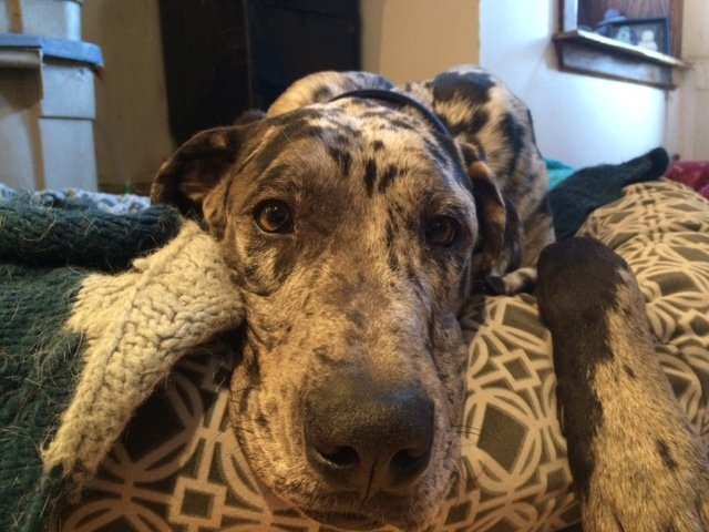 He has great days( is almost 100% house broken already also!) and has not so good days (his Tramadol dose has been increased for his comfort and remains on the NSAIDs) and this was his face when I asked him if he wanted to have another float in the pool! His fur is still wet from his first dip in…..