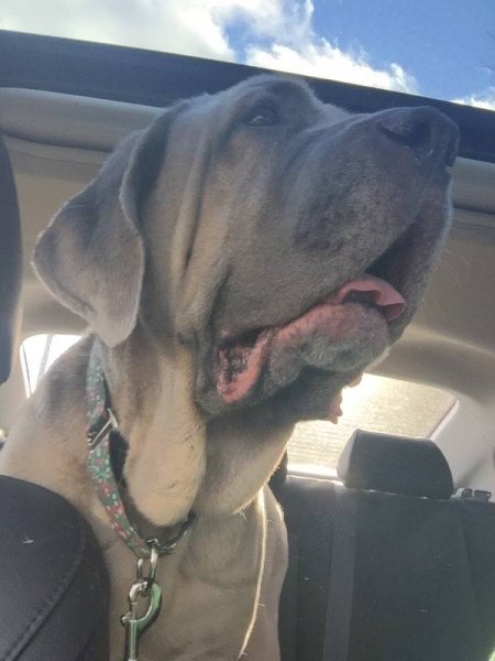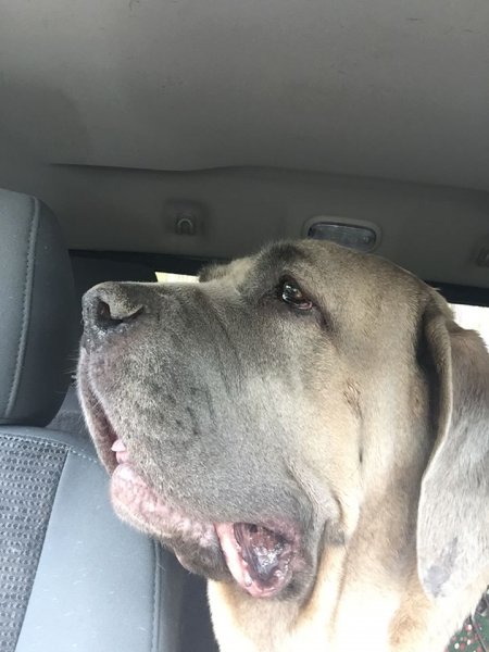 She travels wonderfully in a car, is good with most dogs! She can be an only dog in the home or be with a right matched personality fit dog – male or female. She loves to play with my own 2 year old Dane, Salt and is a hoot! She can and has been selective with dogs outside our home as to whether she wanted to like them or not….so she has a quirky side to her re: some dogs.