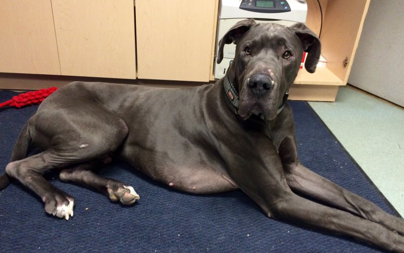 He was a really good boy…..he did smack his almost fully healed happy tip of his tail on the set of doors into the Hospital and opened it up slightly. Poor boy.
