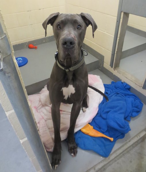 BHRR’s ??? – Male blue with white GD, intact and “had no issues with him in the shelter. He’s been an easy keeper and is a good boy for staff to handle”