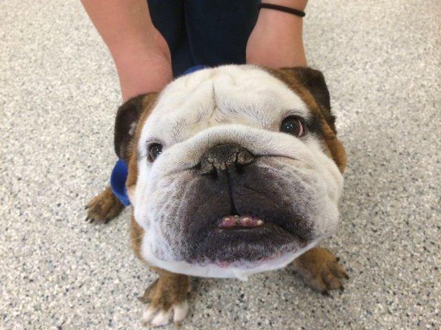 His heart is a beautiful thumbs up and, his Vet at KAH says that his nostril size is great even if he is all smushed face. If his nostril size was small, this poor dog would have had a very limited quality of life.