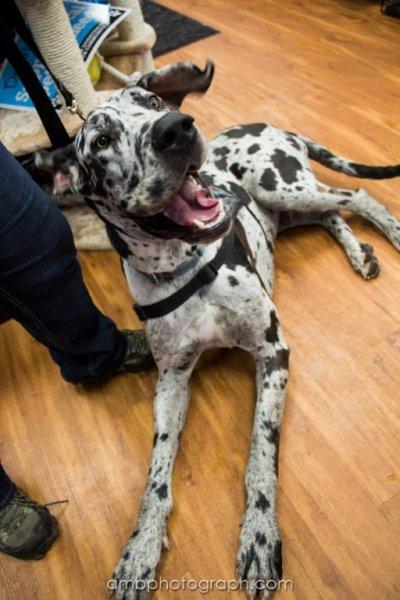 BHRR's Treasure, the emaciated Harlequin male Great Dane…..
