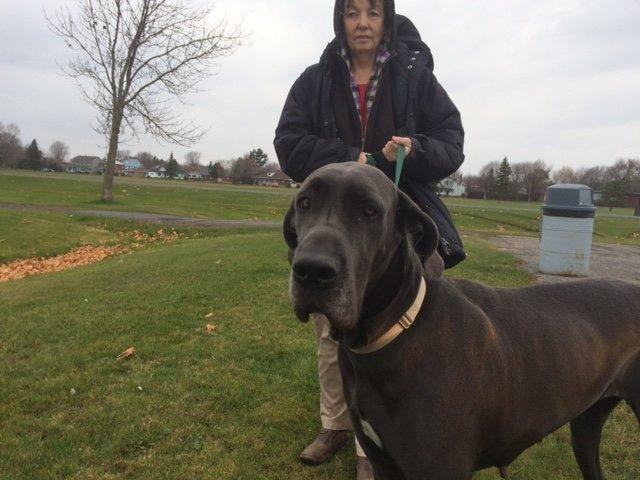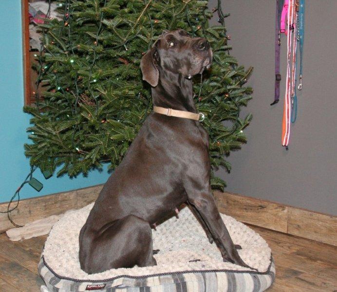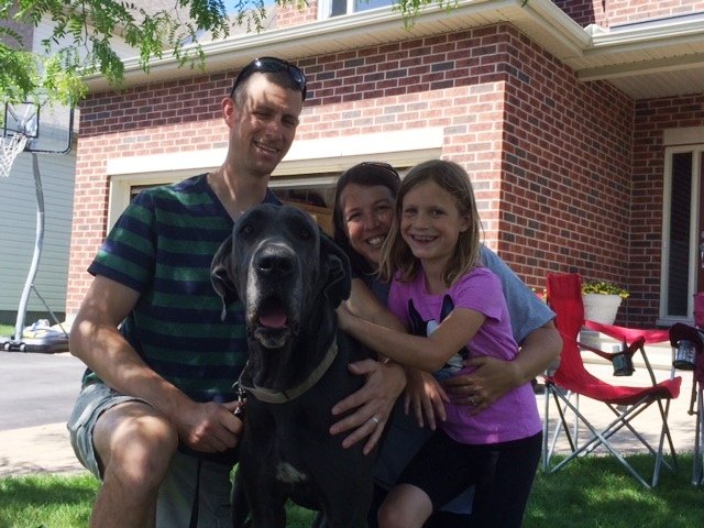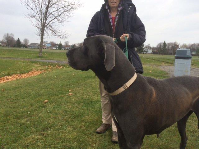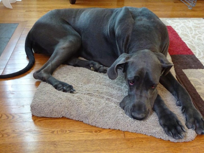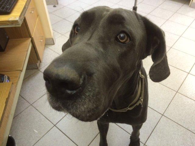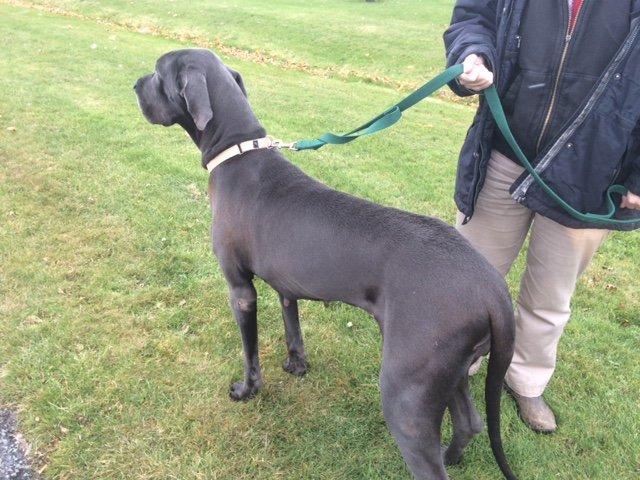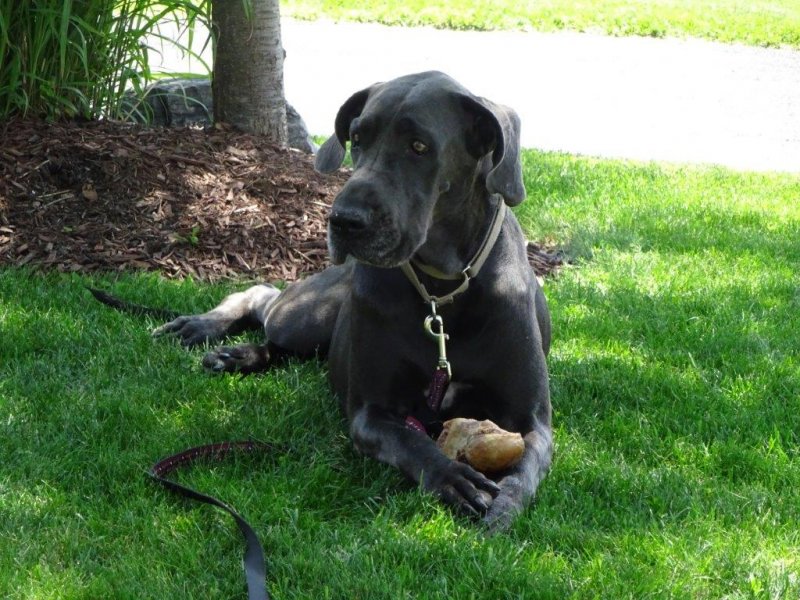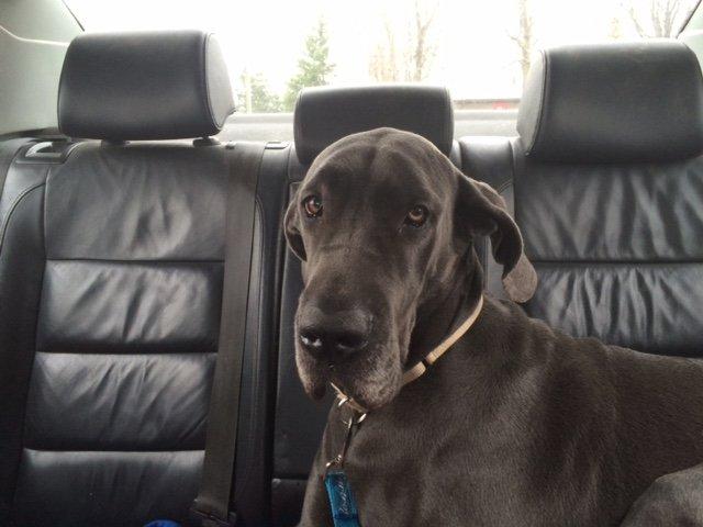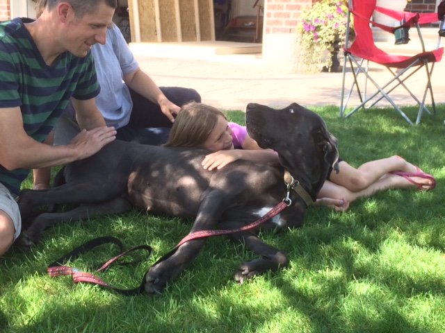 This gorgeous Dane was the picture of a well-mannered dog…she was interested in the food we were preparing in the kitchen but never tried to take any of it, even from the kids who are eye level to her! She was respectful of our two dogs and carefully told our lab she was done playing with a quiet growl.