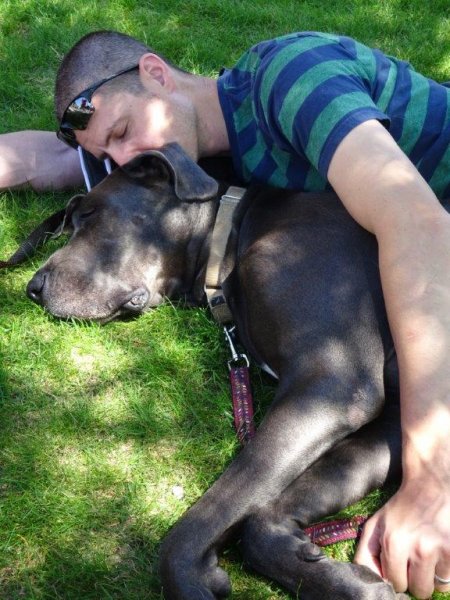 All of us flopped on our front lawn for a bit as various neighbours and friends stopped by to meet Victory. Again, as she had all day, Victory was happy to greet everyone and would quickly demonstrate what a gentle giant she was, offering full body snuggles to whomever wanted one 🙂