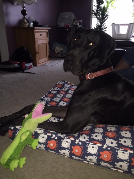 Unfortunately, the home was not aware of prepared for the severe level of this Danes SA(she is about 7.5 months). She also had a tail injury that was not healing and, underwent a partial amputation.