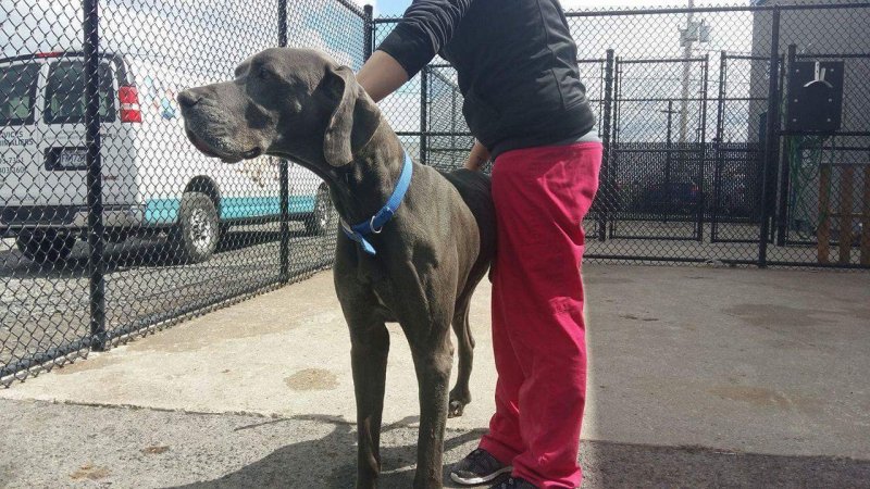 When he first arrived at the shelter on April 8th, they had him weighing 57.4 ks(126.88 pounds). Their last weight in early May had him weighing 43kgs(94.6 kgs).