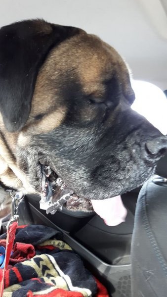 This is a photo shared by the lovely generous angels that picked up BHRR’s Rickards(He NOW has a name!), the English Mastiff from a rural pound and have spent the day transporting him to his equally lovely emerge temp foster home!