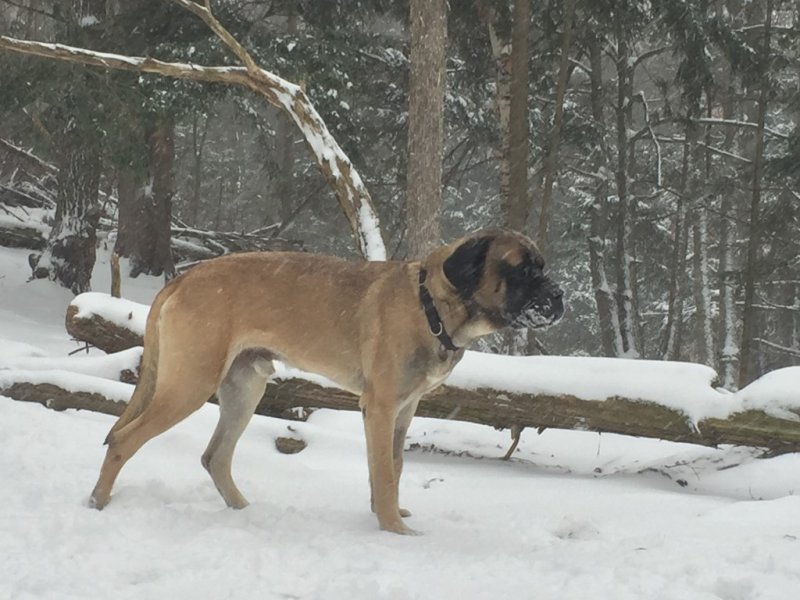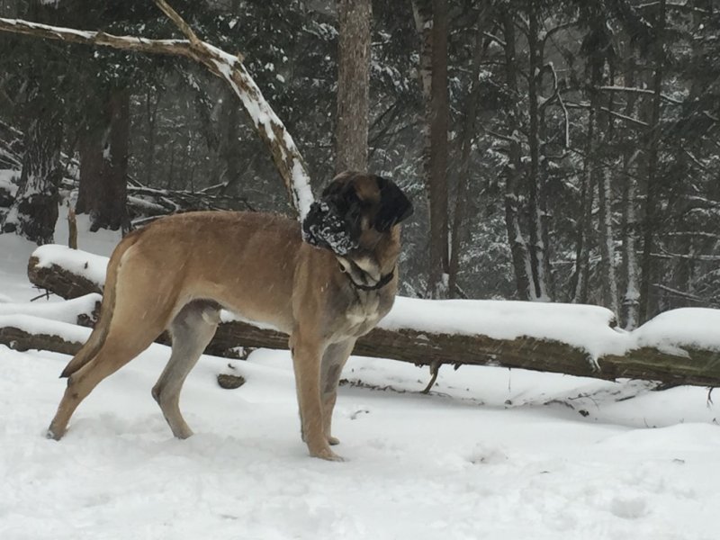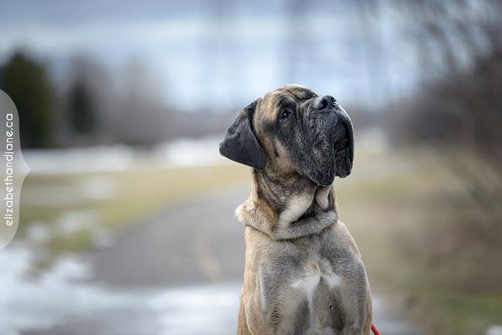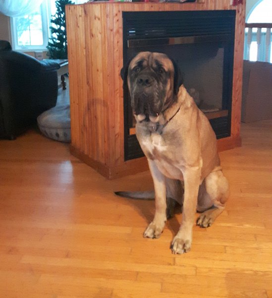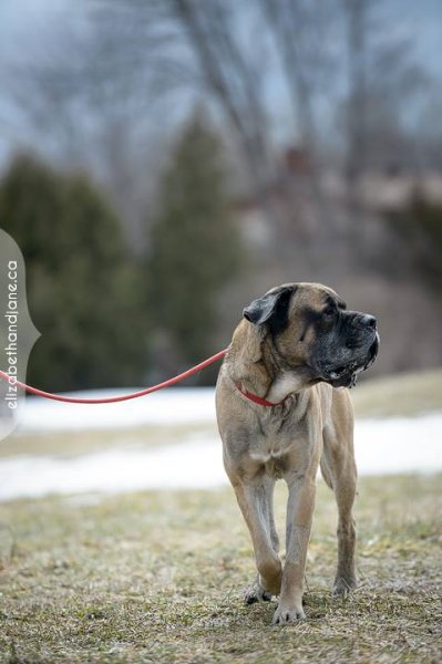 Small Male English Mastiff – Shelter was told ~4 yet bylaw thinks younger as his build is very adolescent.