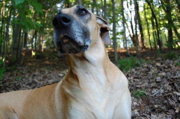 I wanted to post this picture from Saturday June 6th’s BHRR DOGGIE fencing day. THANKS Suzanne & Chuck for the picture. I LOVE this picture of BHRR’s Abbi. ISN’T she just stunning! I can vouch; as can many others that she is equally stunning INSIDE and outside! Sean and I did another nail trim on her last week and she ROCKED! Baby steps…..She did have a couple of tiny tiny tiny ‘sub’ pees when people were over on Saturday yet with all the people; the bulldozer; noises, familar fencing coming down and new fencing etc. going up; we are not overly suprised. Poor Porridge had diarrhea; he was so excited and stressed out by all the action that day. Abbi(sans her DDB partner in crime sister Jenni) was very content to just lie and be around us all day outside. Past experience when her DBB sister Jenni was still with us; saw the two of them liking to do ‘walkabout’ when they could to the horse field to hang out with the horses plus pony! Abbi is going to thrive in a home with order, routine and someone committed to her thirst for continued obedience training. I have quite a few pictures to add to her slideshow of her and BHRR’s Mr. Parker Paws playing and zooming on June 2nd, 2009 and shall get to that presently.