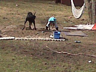 I have been sent photos of him helping their little girl dig in the sandbox, laying by her side as she swings on her swingset; bringing the members of the house his 'signature' big sticks and so much more! WHAT a hoot and a riot he continues to be!!! 😀