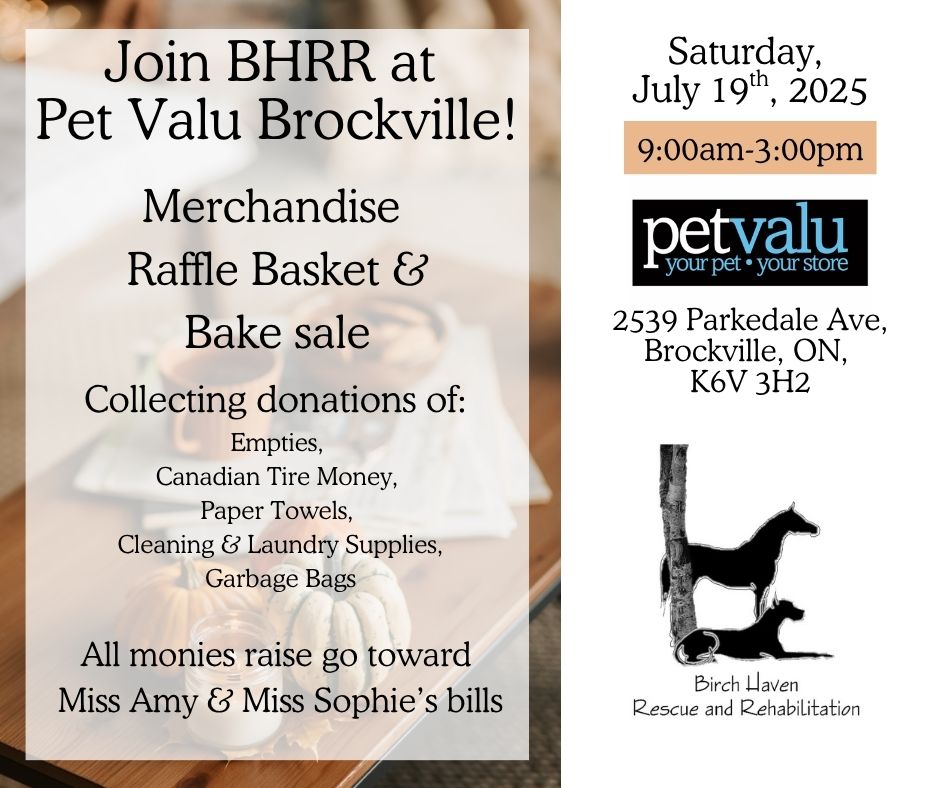 Donations can be made via PayPal to gwen@birchhaven.org OR via email transfer to contactbhrr@gmail.com