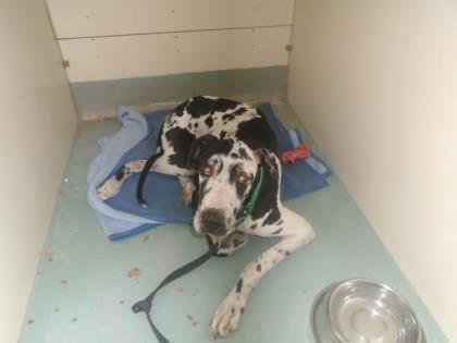 While we did not have a photo of what we knew to be a Harlequin GD(if the colouring was similar to BHRR's Treasure), we committed. As he was just recently o/s to the high kill shelter, he had not yet been evaluated/assessed.