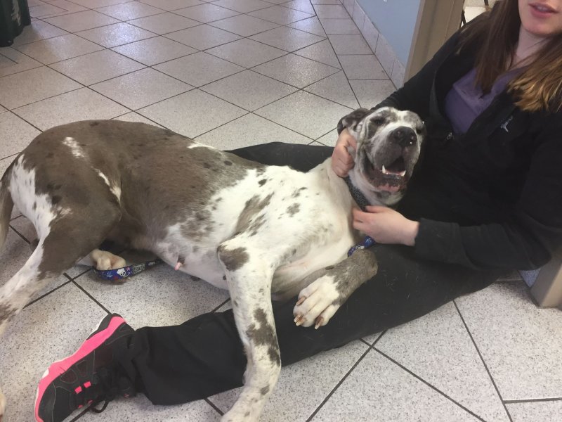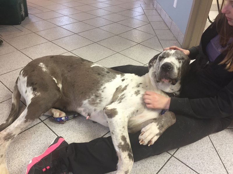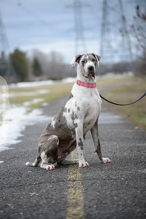 Smaller in height female Great Dane, mind of her own, sweet overall, manners uhmmmm….we will work on that! Shelter had her at 48.9 kgs(107.58 pounds).