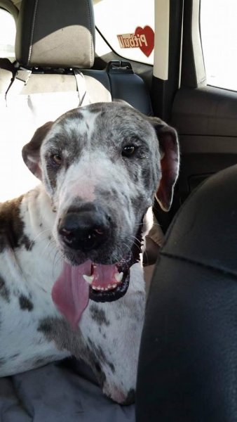 She needs a name….currently she is being called a name by the shelter that we have had two Danes over the past 20.5 years be called, and one of those Danes is presently in our adoptive programs and also living with us, so, a new name this beauty will need. A new name for a new wonderful beginning, fresh with all the care and love she needs and deserves!