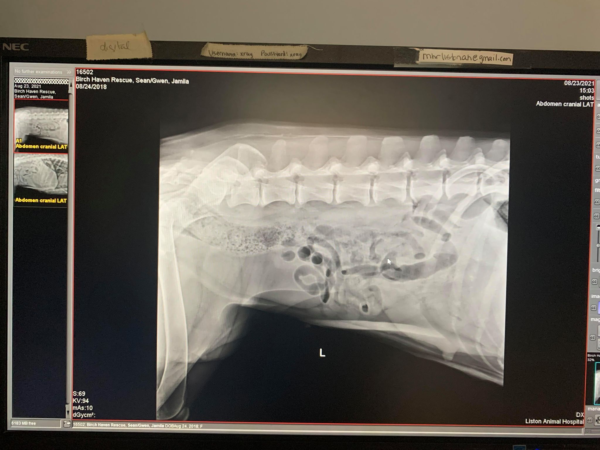 A copy of her two x-rays.