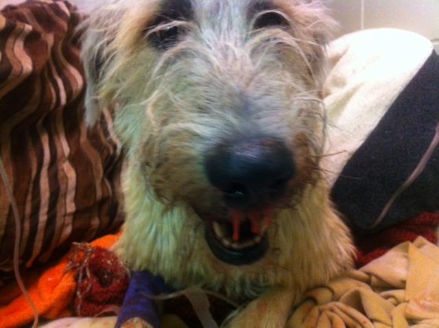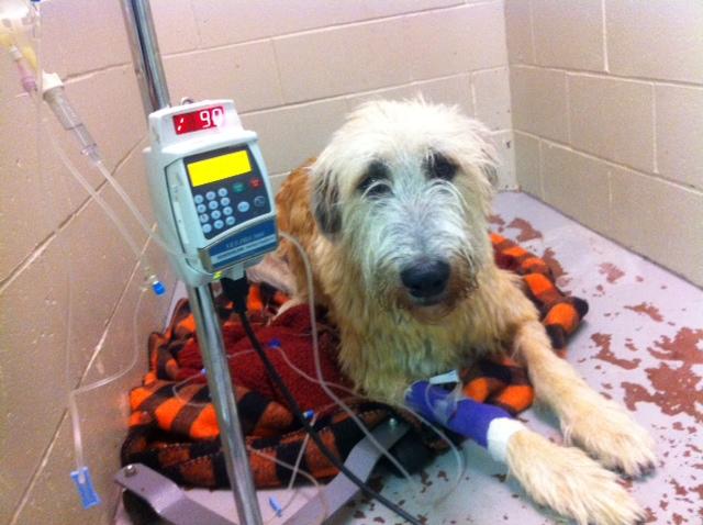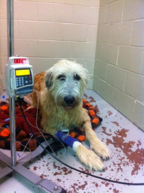 2) If her thyroid was normal, then we were most likely looking at Vasculitis and, sadly, in animal medicine, there are no medical surgical options for veinous surgeries to make her better. AND, the rationale behind, this possible prognosis is that before she came to BHRR, she had bloated more than once, had a pexy surgery, had more than one obstruction and, when she was surrendered to us in August of 2013, she had an obstruction and was bloated. All of these bloats takes a huge toll on the heart and circulatory system and, being a giant breed dog, her system was greatly affected. AND, after she was surrendered to BHRR, we suspected that she may have also had Wobblers, we ruled out Addison's plus Cushing's and did receive the diagnosis of Wobblers. This, also greatly affects the circulatory system and, being a giant breed dog, even more so. So, this poor dog was being really whammied. AND, she was approaching age 5, not, being the most healthy or strongest of IW, her system was more sluggish than a younger, more healthy dog, and, being a giant breed dog, she was even more affected with the aging process.