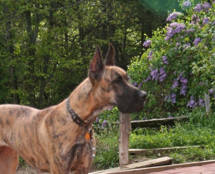 We have received an application for Mazda that we are willing to consider to see if this could be the best matched home for her. We have been having some trouble completing references in order to make the most informed decision to move to a home visit and hopefully; we can made some contact soon. Mazda is doing well. The sun has really sunbleached her to a very light/blonde brindle colour on a lot of her gorgeous coat and she is still that ‘ham’ of a gal! She loves her runs and will just zoom and zip back and forth! Her recall is almost to perfection now in distraction situations yet every once in awhile she can still be that growing Dane and the brain just ‘goes out to lunch’ LOL She is still as food/treat motivated as ever and man, she just becomes more and more muscled! She is a powerhouse of a Dane and we continue to work on her ‘sharing’ for she first just wants to grab all the toys and put them into a pile and decide which one she wants THEN leave the rest others to play with….HOG! She is just as brilliant as ever this one!