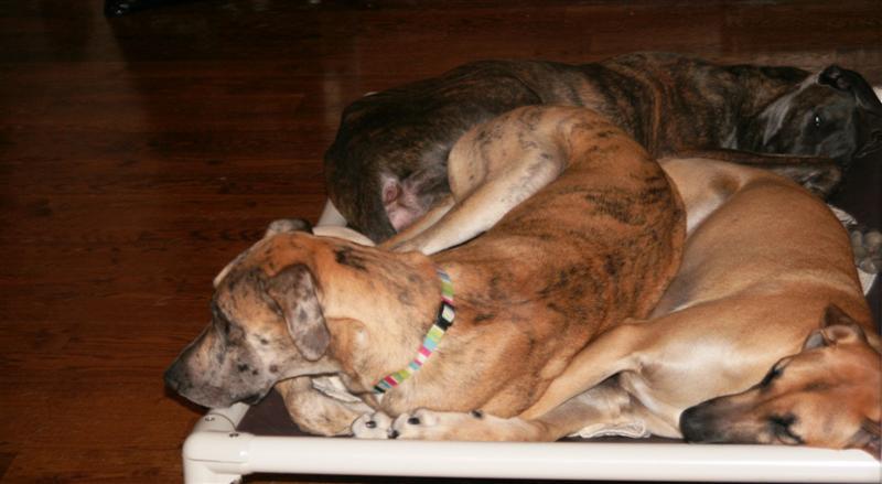 The last picture of the 3 DBB’s together on March 29th, ’08 the day Jenni was adopted & lying on one of the Kuranda beds.